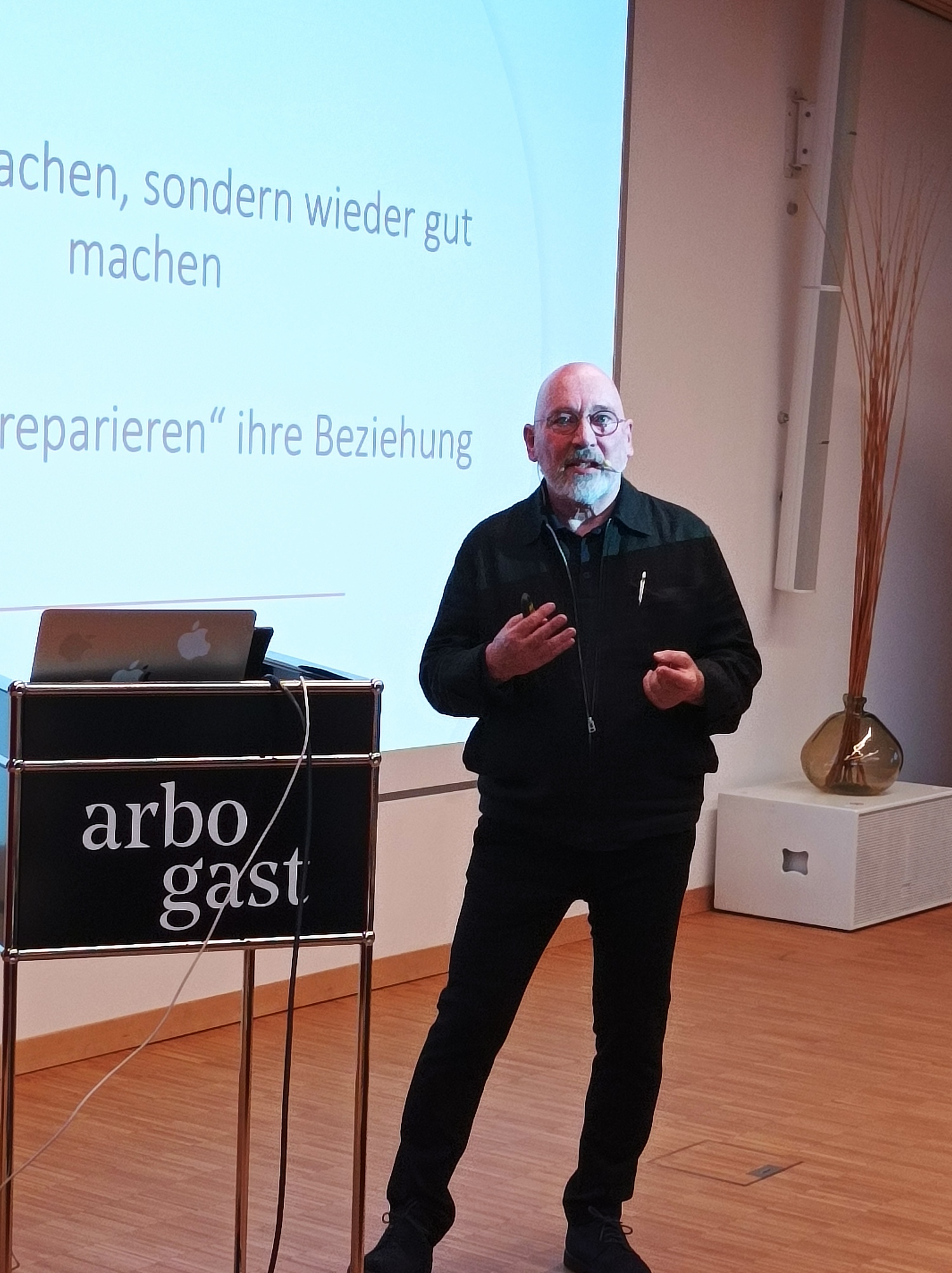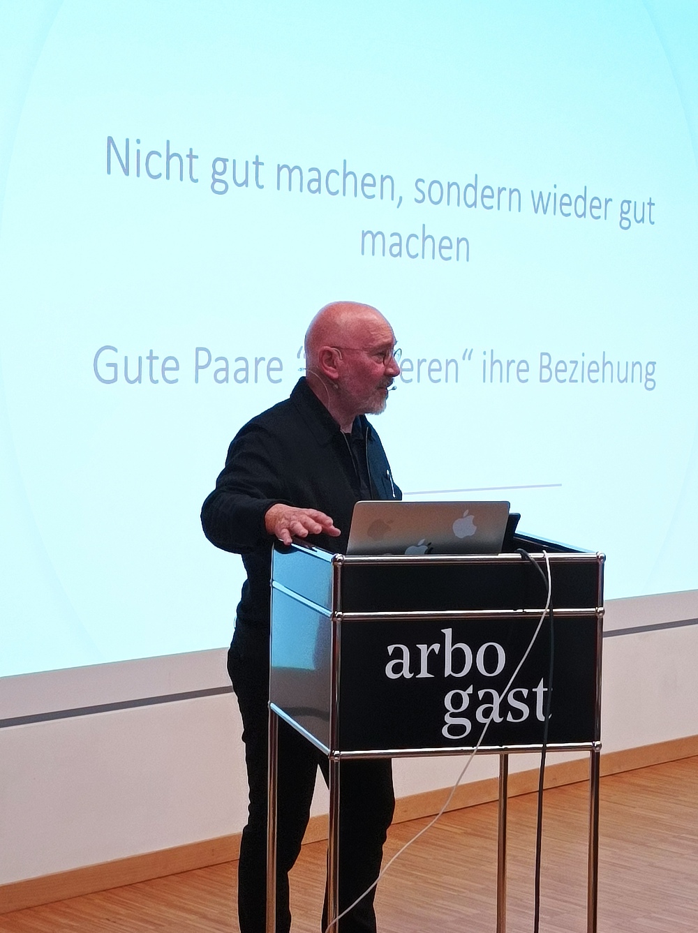 Für Holzberg ist Bindung der Dreh- und Angelpunkt jeder Beziehung. Seine zentrale Frage: „Bist du für mich da?“ Das Ziel sei nicht Perfektion, sondern die Fähigkeit zur Wiedergutmachung. Denn: „80 Prozent der Kommunikation läuft schief“, so Holzberg – entscheidend sei der Wille zur Reparatur. Eine gelingende Beziehung basiere auf Konfliktfähigkeit. Sein Tipp: „Erst sich selbst beruhigen – dann das Gegenüber.“