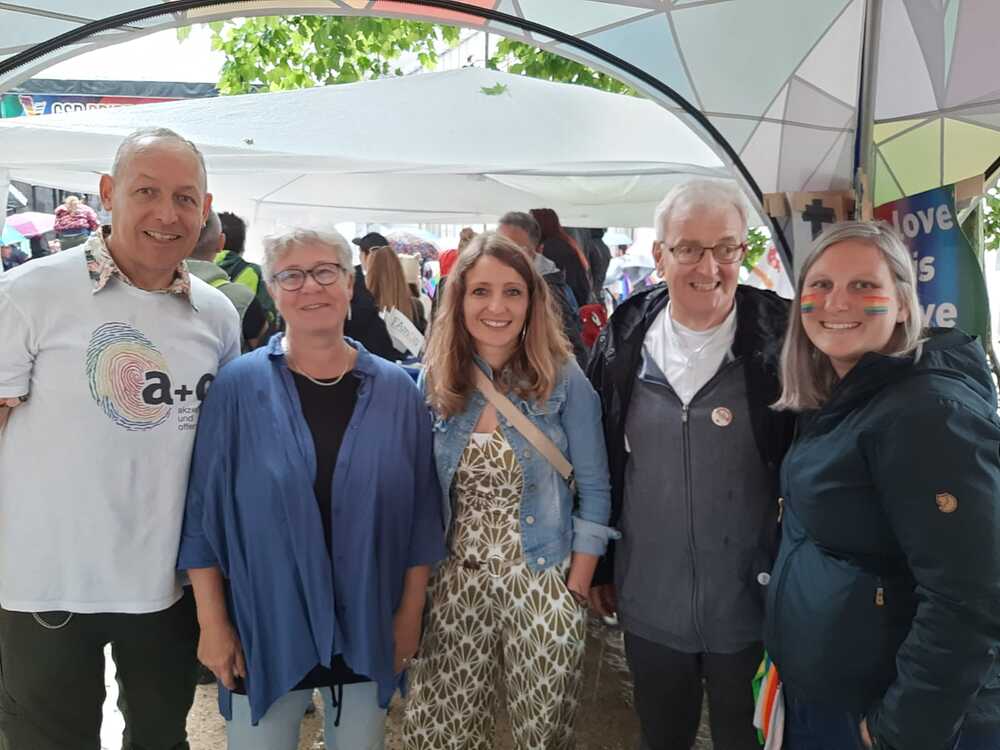 Auch beim diesjährigen CSD Bregenz am Samstag, den 7. Juni, war deswegen die Regenbogenpastoral wieder sichtbar präsent: Gemeinsam mit der Jungen Kirche Vorarlberg gestaltete sie ein Zelt im „Village“, verteilte kleine Give-Aways und bot Raum für Gespräche. Bei der Parade und der anschließenden Kundgebung setzte das Team ein klares Zeichen: Für eine Kirche, die offen ist. Für Menschen, die lieben.